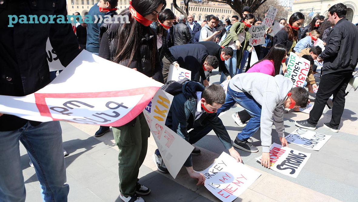 Para peserta datang ke sini dengan membawa spanduk bertuliskan “Buka jalan hidup, “Artsakh itu kuat”, “Artsakh yang bebas dan kuat”, “Berhenti, Nikol” dan lainnya. Mereka mengikat mulut dengan pita merah sebagai tanda diamnya pemerintah terkait situasi di Artsakh.
